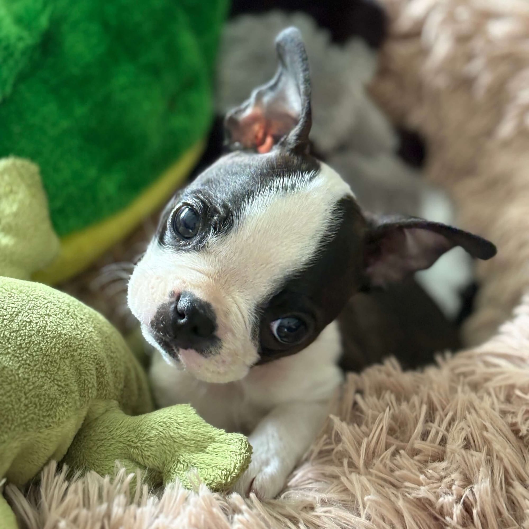 On May 14, I bought a Boston Terrier. Her name is Penelope Hermione. She got very sick with 3 parasites but recovered quickly. She's a family dog—my sister's family is training her and taking care of her while me or my parents dogsit for up to one week each month starting next year. Once they get their own puppy, I'll "claim" Penny. This may be next year or may be 5+ years down the road.